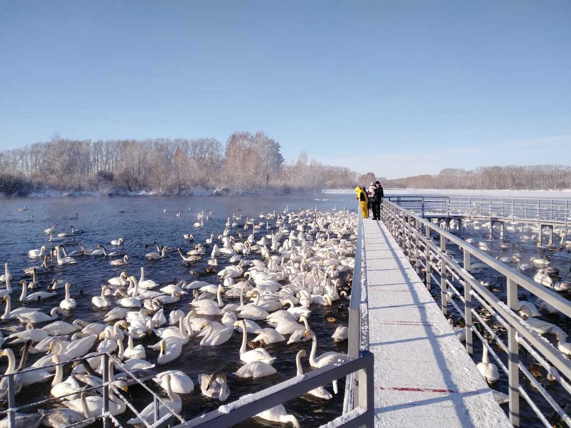 Ключевая природная достопримечательность маршрута. Озеро Светлое (Лебединое) — уникальный памятник природы, куда ежегодно на зимовку прилетают сотни лебедей-кликунов. Даже в сильные морозы озеро не замерзает благодаря тёплым ключам, бьющим со дна. Для туристов оборудованы смотровые площадки и мостки для наблюдения за птицами. Это одно из самых трогательных и фотогеничных мест Алтая.