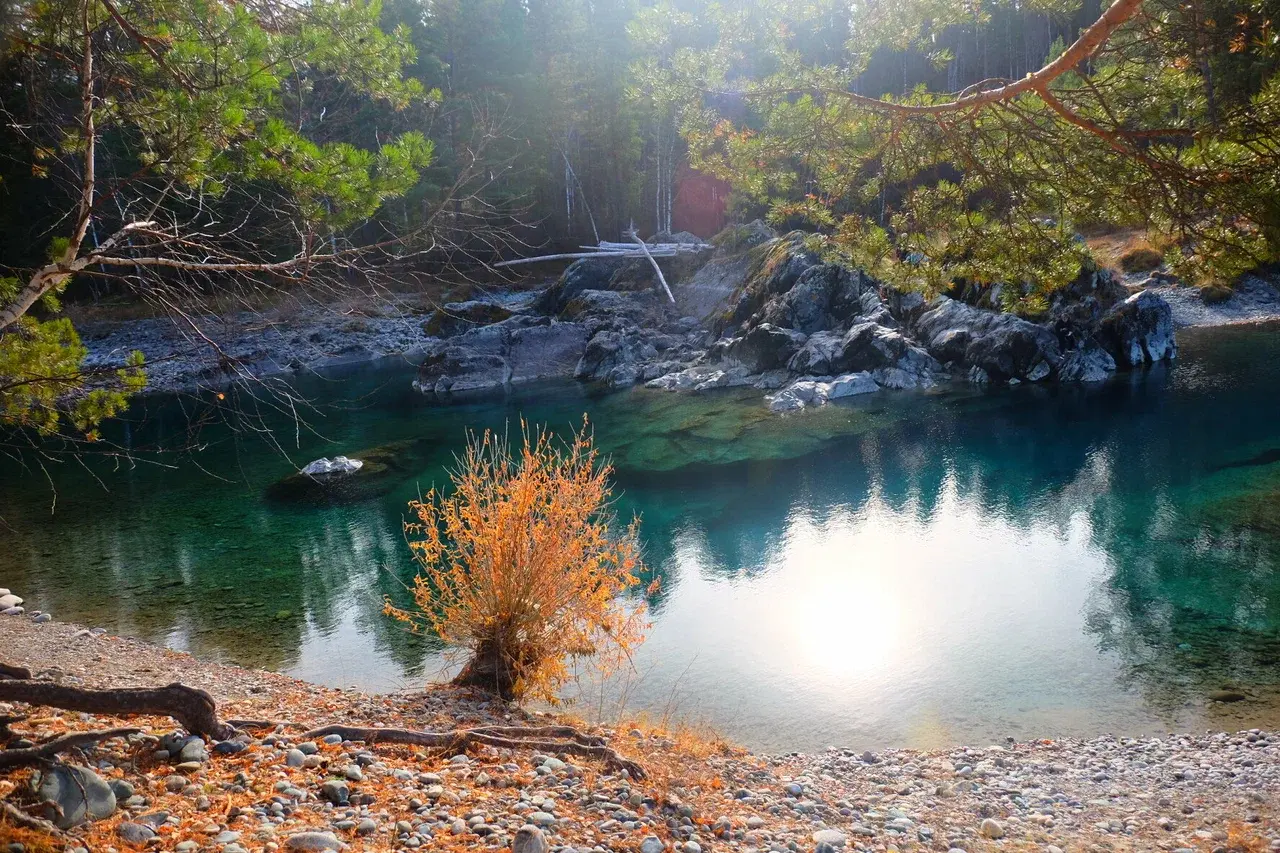 3. Манжерокский порог (Манжерокские ворота): Мощный порог на Катуни, где река с шумом прорывается между пятью гигантскими камнями.